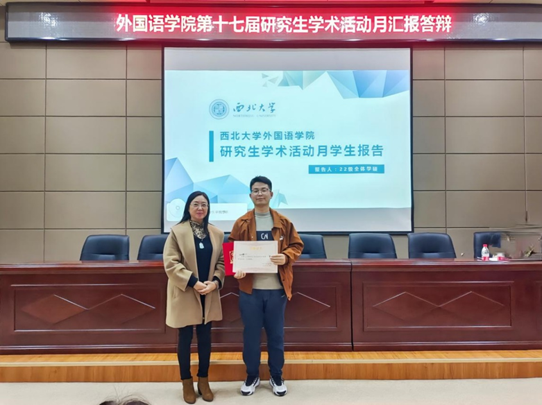 In this activity, based on the proportion of participants, there were first, second, and third prizes, totaling six winners. After the preliminary scoring of the papers and combining the scores from the on-site defense, the committee members provided comprehensive ratings to select the winning students for this activity. Ultimately, Ren Wanbo enrolled in 2022 who majors in Foreign Linguistics and Applied Linguistics won the first prize. Yang Jingjing who majors in Japanese Language and Literature, and Zhang Yin who majors in Foreign Linguistics and Applied Linguistics won the second prize. Liang Jiaxin, Zhong Xiaomeng, and Lai Xiaoqian who major in Foreign Linguistics and Applied Linguistics received the third prize. Finally, attending mentors awarded the winning students, and a group photo of all teachers and students was taken to commemorate the successful completion of this activity!