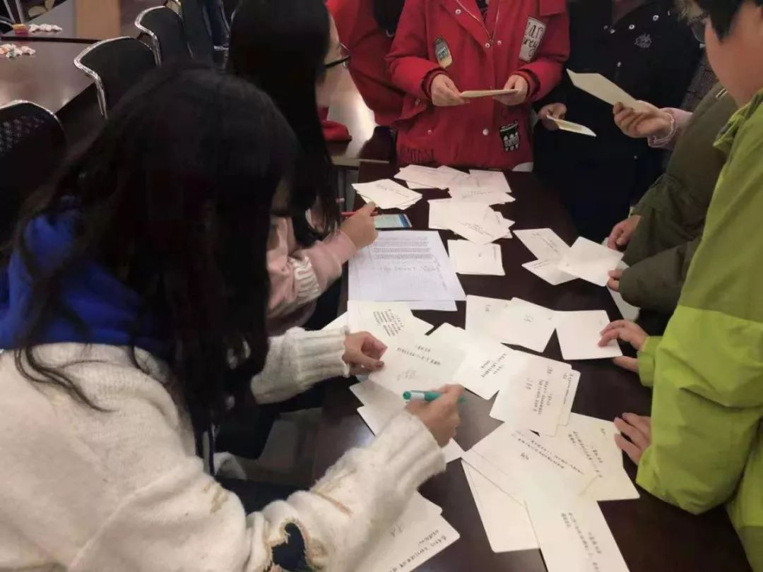 首先,同学们参与了游戏——问答对对碰。在游戏中,同学们根据抽到的三张卡片去寻找与自己配对的关于感恩节历史的问题或答案,并在工作人员的监督下完成相应的大冒险任务,最终根据完成的数量和速度评出最终优胜的一、二、三名。这个游戏用一种不同于往常知识竞赛的方式,使同学们在快乐中学习到更多关于感恩节的小常识,也在感恩节主题的大冒险中敢于将心中的那份感谢表达出来。