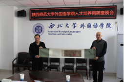 曹若男院长首先对陕西师范大学外国语学院董增云书记一行前来我院进行调研座谈表示热烈欢迎。会中,董增云书记简要介绍了陕西师范大学外国学院的建院历史、学科发展、科研成果、师资队伍、学生培养等各方面的整体情况。曹若男院长也对我院的基本情况做了简要描述,重点强调了“外语+”的学科建设发展思路。王军书记简要介绍了相关党建工作的一些有效举措。苏蕊副院长对学院的学科发展历程做了简要梳理。李蓂副院长重点介绍了大学英语改革及学科竞赛的相关情况。赵明星老师分享了学生工作的相关经验和成果。随后,参会双方就外语学科建设、人才培养、课程改革等问题进行了深入的沟通和交流。最后,王军书记与董增云书记互赠礼物,表达了兄弟院校之间的深情厚谊,共同期待彼此互通有无,加强合作,共谋发展。