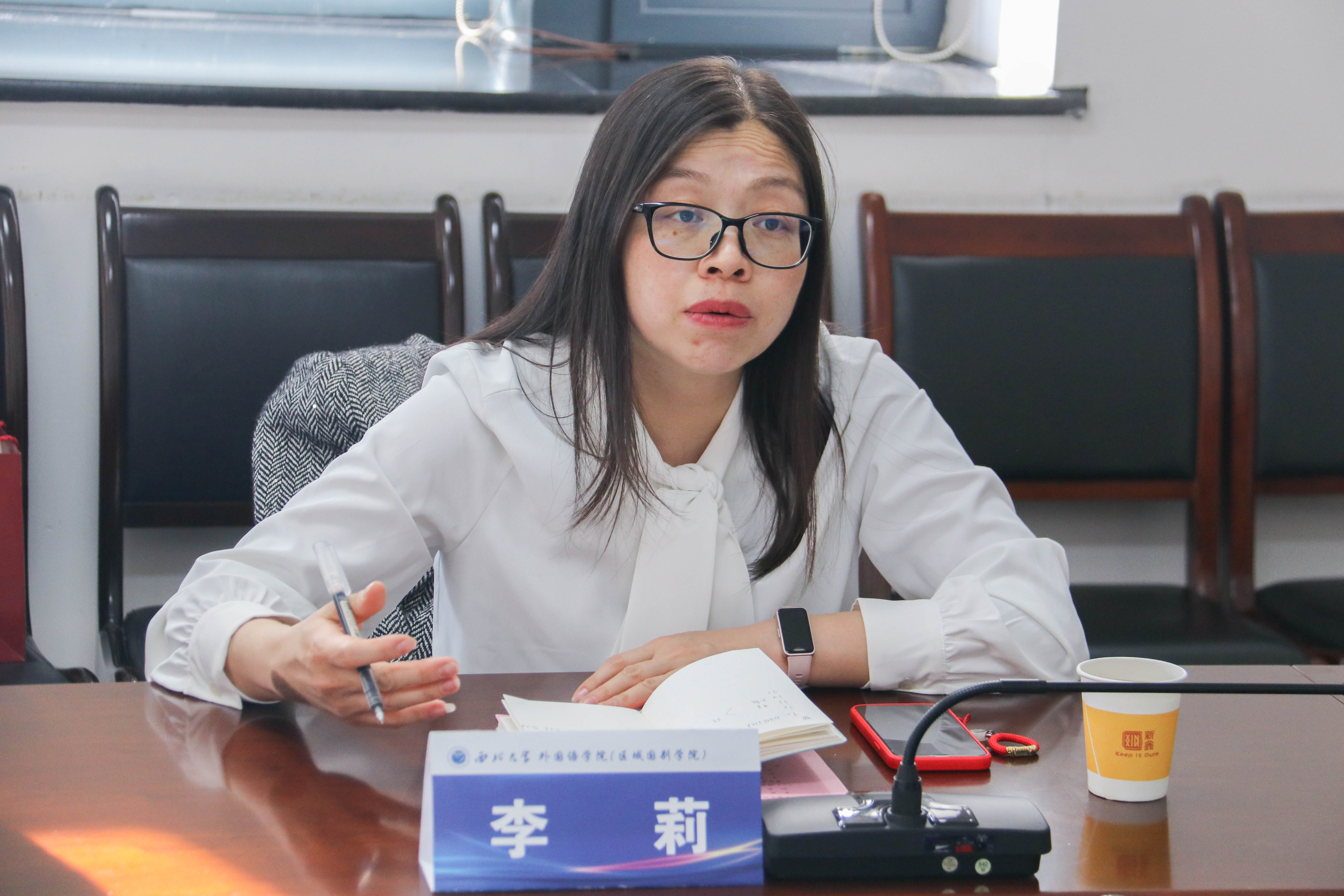 曹若男院长首先对西北师范大学外国语学院一行的到访表示热烈欢迎。她简要介绍了我院的系部设置和发展概况,着重分享了大学英语在多学科融合背景下的教学探索与实践成果。她指出,在学校全面实行学分制的背景下,我院大学英语教学围绕“以学生为中心”的理念,不断优化课程结构,探索多样化的教学模式,推动教学改革稳步前行。